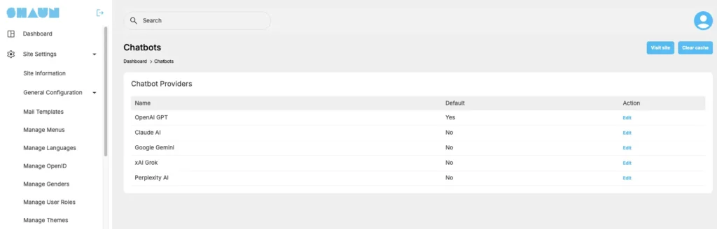 The new Chatbot feature is now available on ShaunSocial — a powerful integration that connects the world’s leading AI platforms (ChatGPT, Grok, Gemini, Claude, and Perplexity) directly to your community.